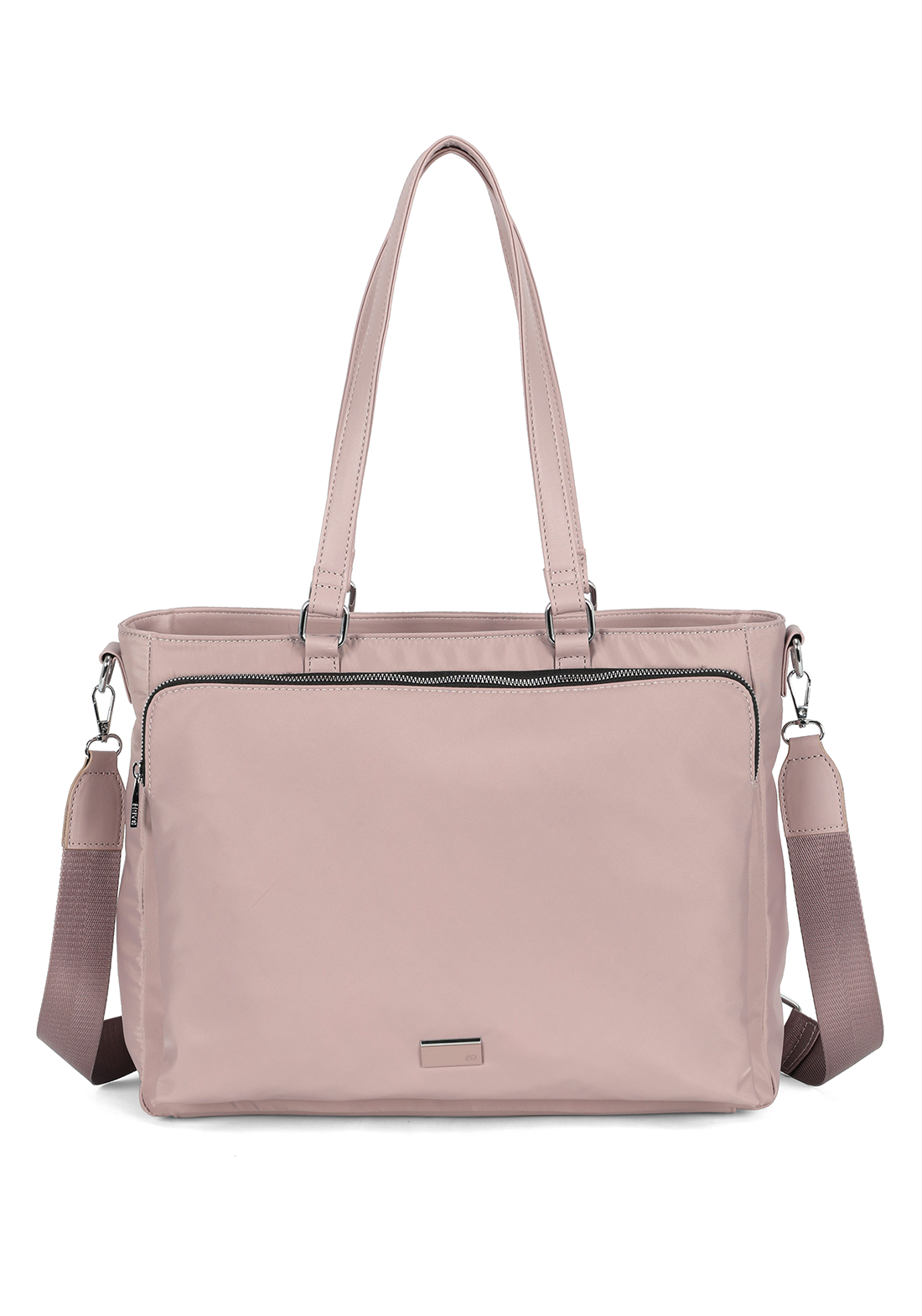 - Versátil: pode ser usada no ombro, de forma transversal ou acoplada à mala em viagens.
