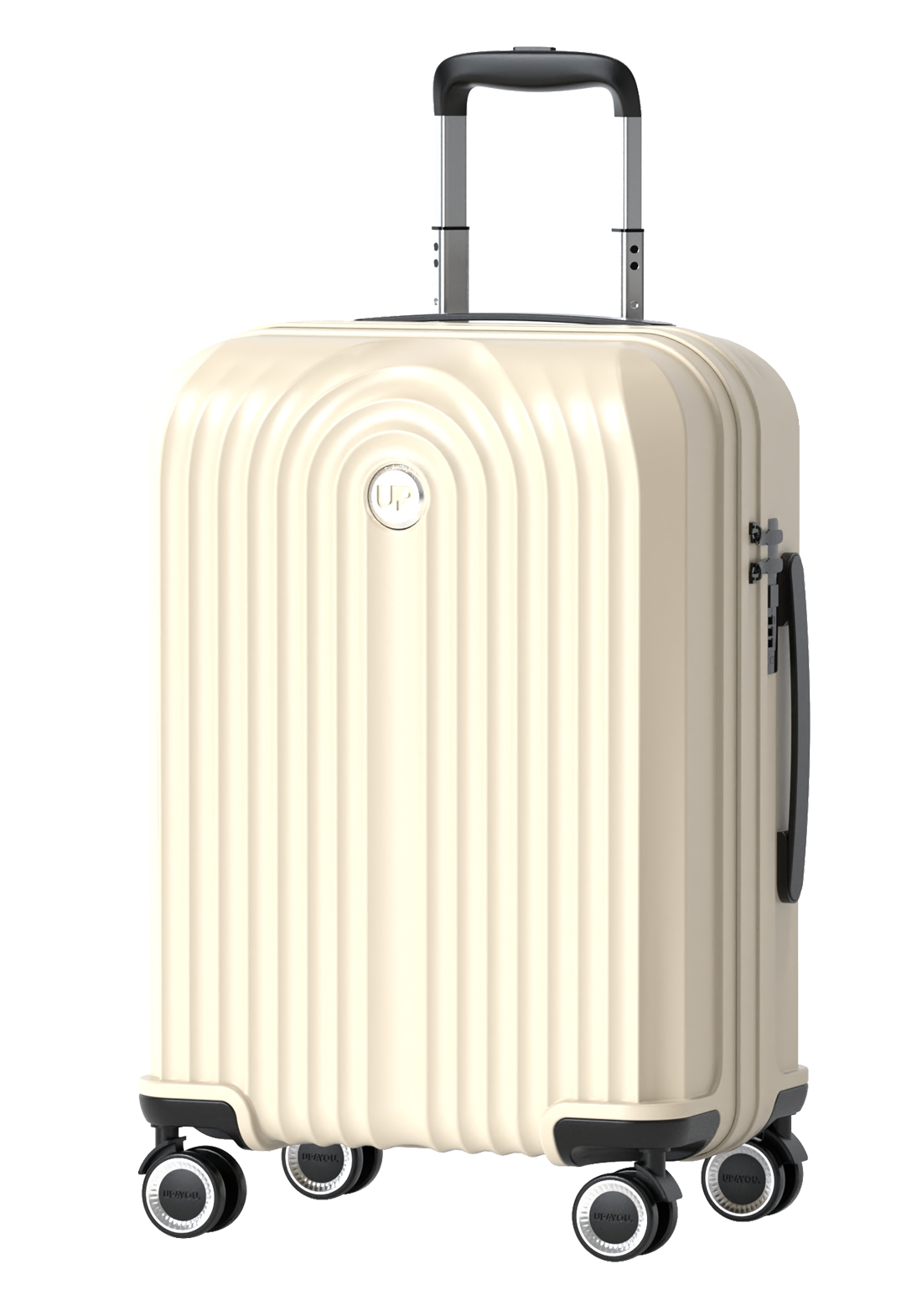 Confeccionada em ABS leve e resistente, a mala apresenta detalhes em alto relevo e logo em metal UP4You. O interior é forrado em poliéster e dispõe de divisória com zíper, elástico interno e bolso adicional com zíper, garantindo praticidade na organização.