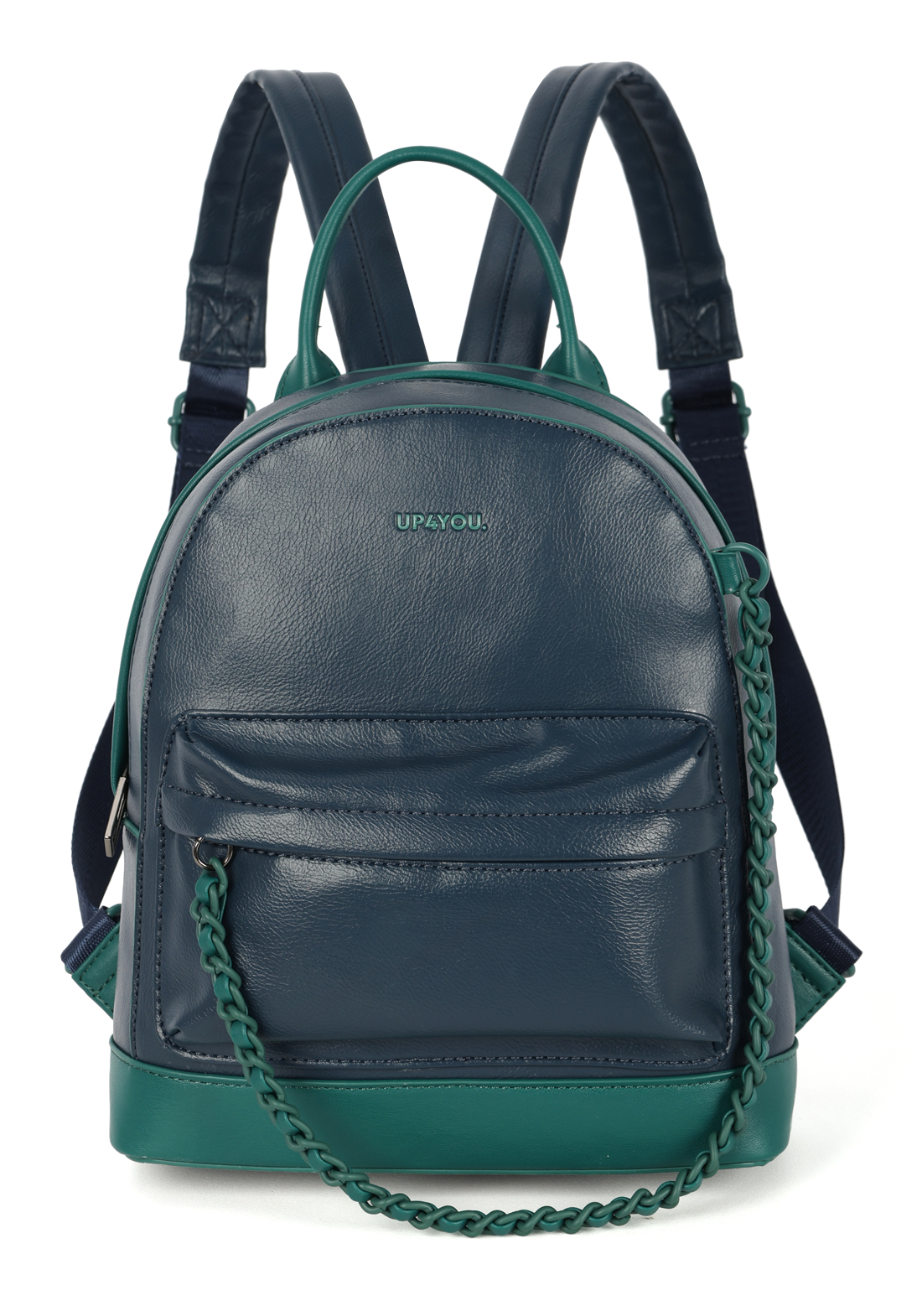 Leve estilo e praticidade para o seu dia a dia com a Mochila Up4You da coleção Inverno! Com design bicolor moderno e versátil, essa mochila é ideal para acompanhar você em passeios, trabalho, reuniões e eventos casuais. Produzida com material durável e detalhes únicos, como bolso frontal com corrente e logo em metal bicolor, ela une elegância e funcionalidade.
