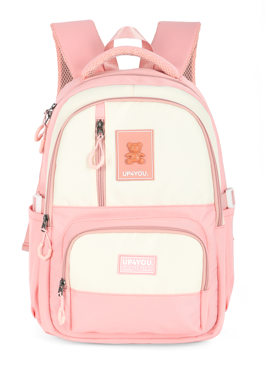 A nova coleção UP4YOU traz modelos incríveis para todos os estilos, sempre com uma opção que combina com você. A mochila juvenil de costas é perfeita para quem busca praticidade e design moderno, com cores em tons pastéis e o logo exclusivo Up4you Teddy em resina.