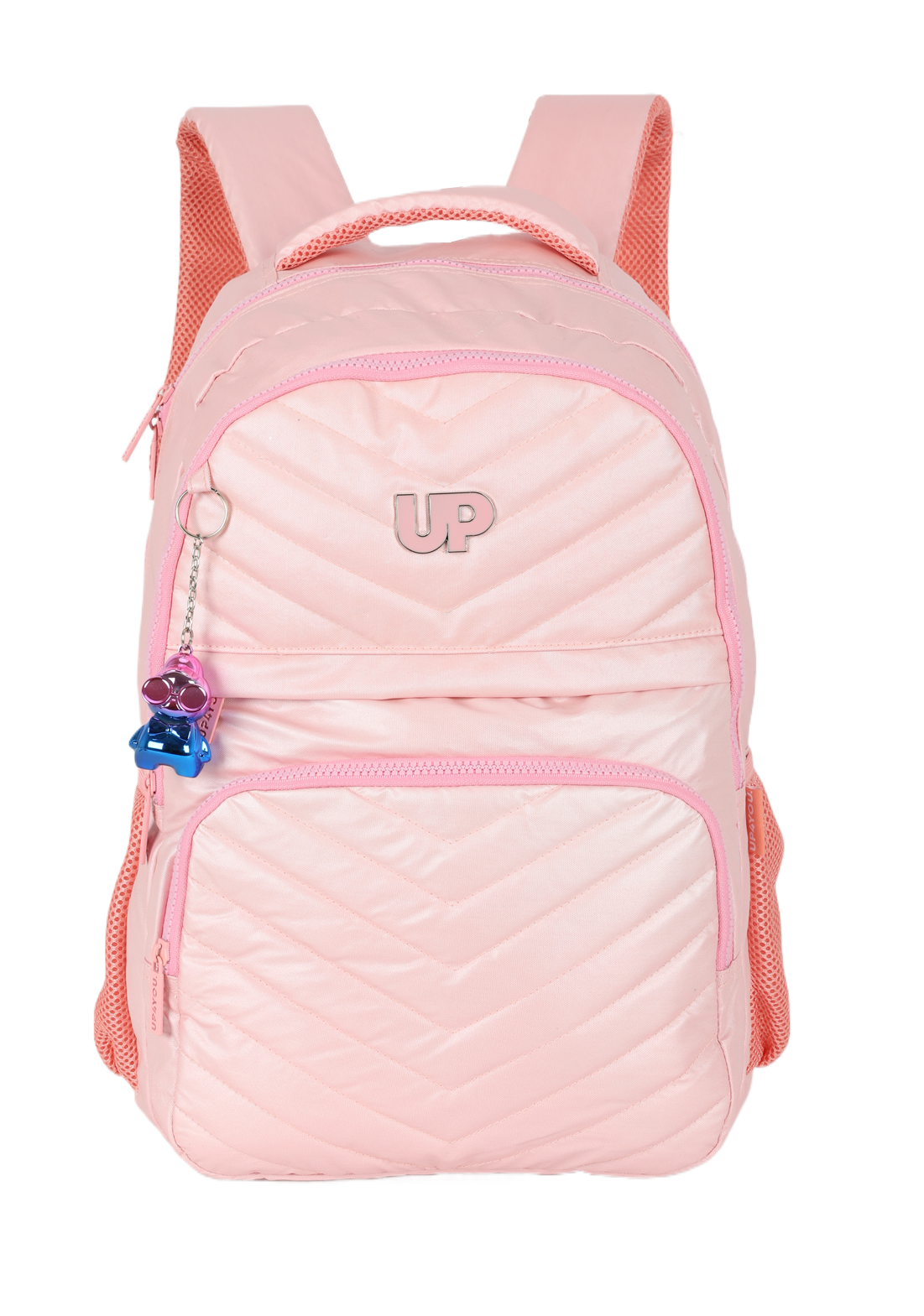 Descubra a nova coleção Up4you, criada para quem busca unir estilo e praticidade em qualquer ocasião! Com designs modernos e funcionais, essa linha é ideal para jovens, adultos e crianças que desejam se destacar no visual sem renunciar à funcionalidade. Cada detalhe foi pensado com foco no conforto e na versatilidade. O logo em metal resinado, no mesmo tom da mochila, e o chaveiro exclusivo com a mascote UP trazem um toque único e personalizado. Feita com tecido Crinkle metalizado, a mochila apresenta um brilho discreto e elegante, complementado por bolso frontal e bolsos laterais com elástico, além de alças superconfortáveis.