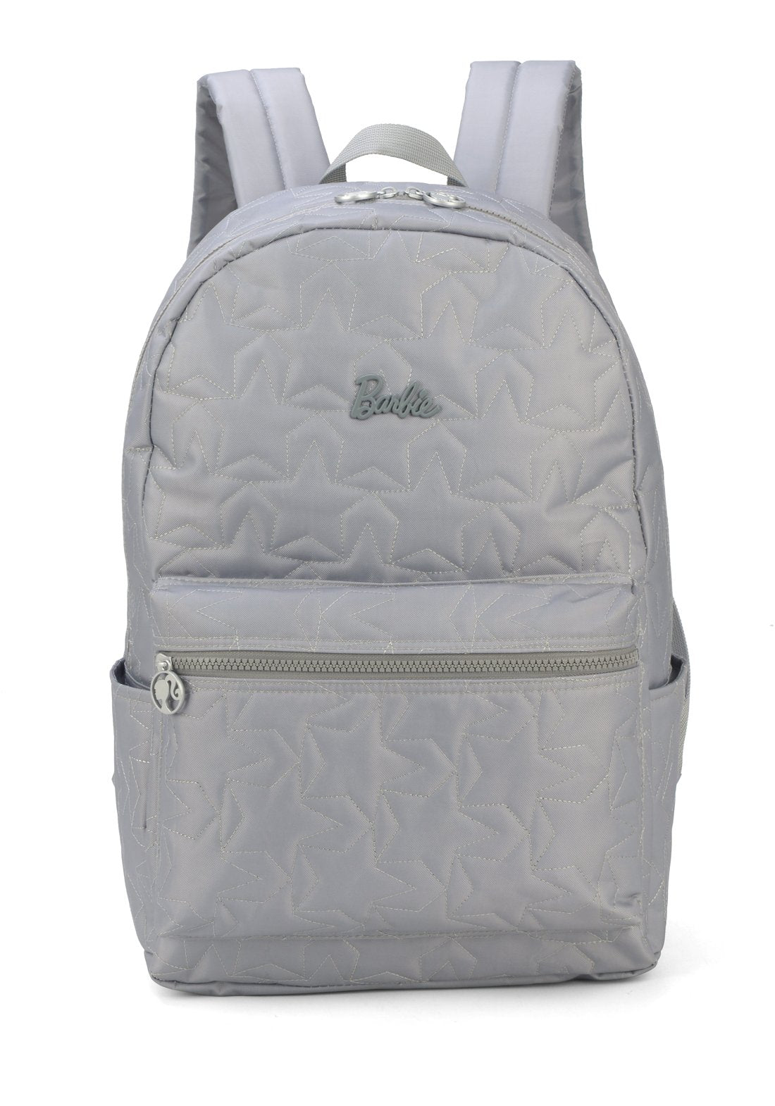 Mochila de Costas Média Juvenil Nailon Matelassê Estrelas Barbie Cinza