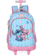 Mochila de Rodinhas Média Juvenil de Costas Stitch e Angel com Chaveiro