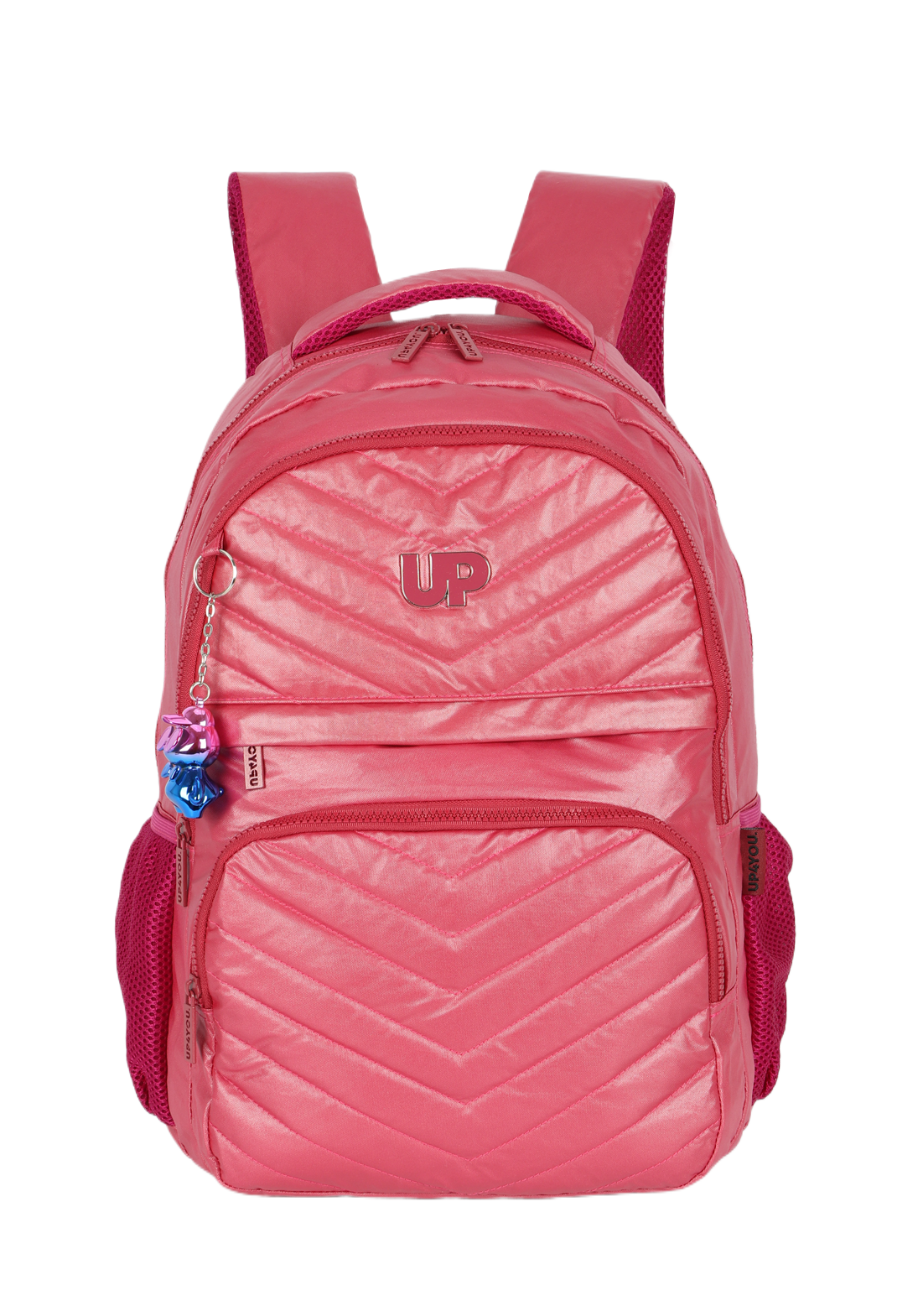 Descubra a nova coleção Up4you, criada para quem busca unir estilo e praticidade em qualquer ocasião! Com designs modernos e funcionais, essa linha é ideal para jovens, adultos e crianças que desejam se destacar no visual sem renunciar à funcionalidade. Cada detalhe foi pensado com foco no conforto e na versatilidade. O logo em metal resinado, no mesmo tom da mochila, e o chaveiro exclusivo com a mascote UP trazem um toque único e personalizado. Feita com tecido Crinkle metalizado, a mochila apresenta um brilho discreto e elegante, complementado por bolso frontal e bolsos laterais com elástico, além de alças superconfortáveis.